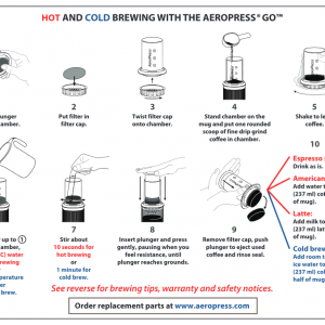 Aeropress Go merupakan alat seduh manual portabel yang travel-friendly seduh kopi dengan teknik vacuum-press dengan mengandalkan tekanan pada proses ekstraksinya yang praktis dibawa kemana saja dan cukup mudah untuk digunakan dengan mengandalkan tekanan pada proses ekstrasinya. Selain proses seduh secara manual Aerobie Aeropress Go ini juga bisa membuat kopi Cold Brew.