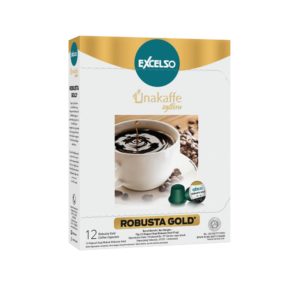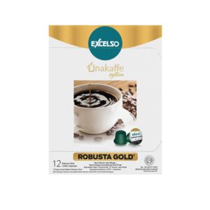 Excelso Unakaffe Robusta merupakan 100% biji kopi robusta yang di panen dari perkebunan robusta terbaik khusus untuk menghasilkan rasa yang berkualitas memiliki aroma sereal dan gula merah dengan sentuhan rasa biji cokelat dan kacang-kacangan yang menyenangkan dengan tingkat kekentalan kopi lebih ke medium / sedang.
